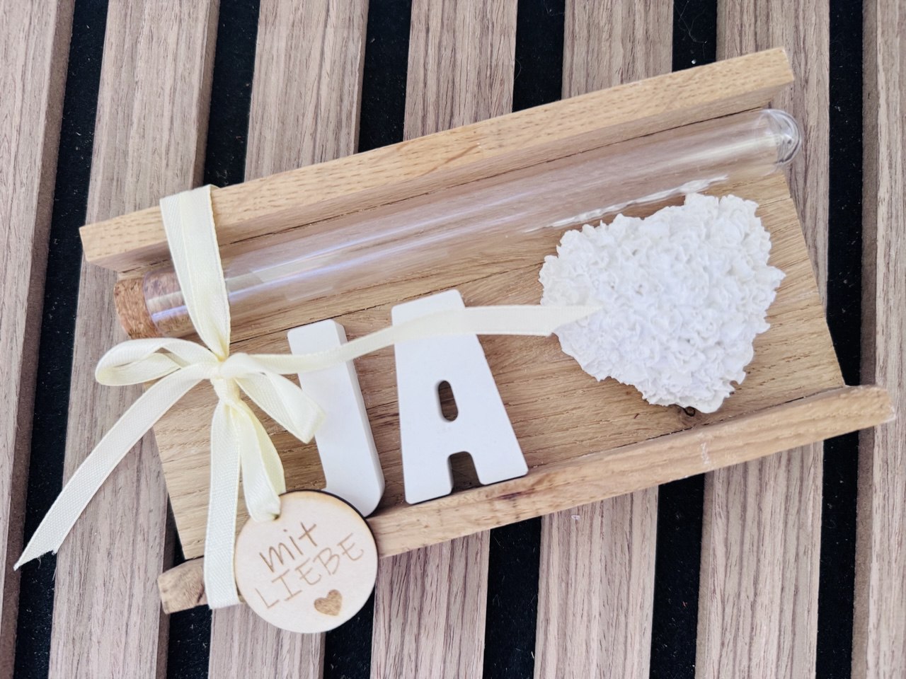 Das Geschenk „JA“ inklusive Reagenzglas ist eine durchdachte und stilvolle Lösung für Hochzeitsgeschenke. Das hochwertige Reagenzglas ermöglicht es, Geldbeträge sicher und ansprechend zu überreichen, wodurch Ihr Geschenk sowohl praktisch als auch elegant wirkt. Dieses Präsent überzeugt durch seine schlichte Ästhetik und macht jeden Beitrag zum besonderen Anlass unvergesslich.