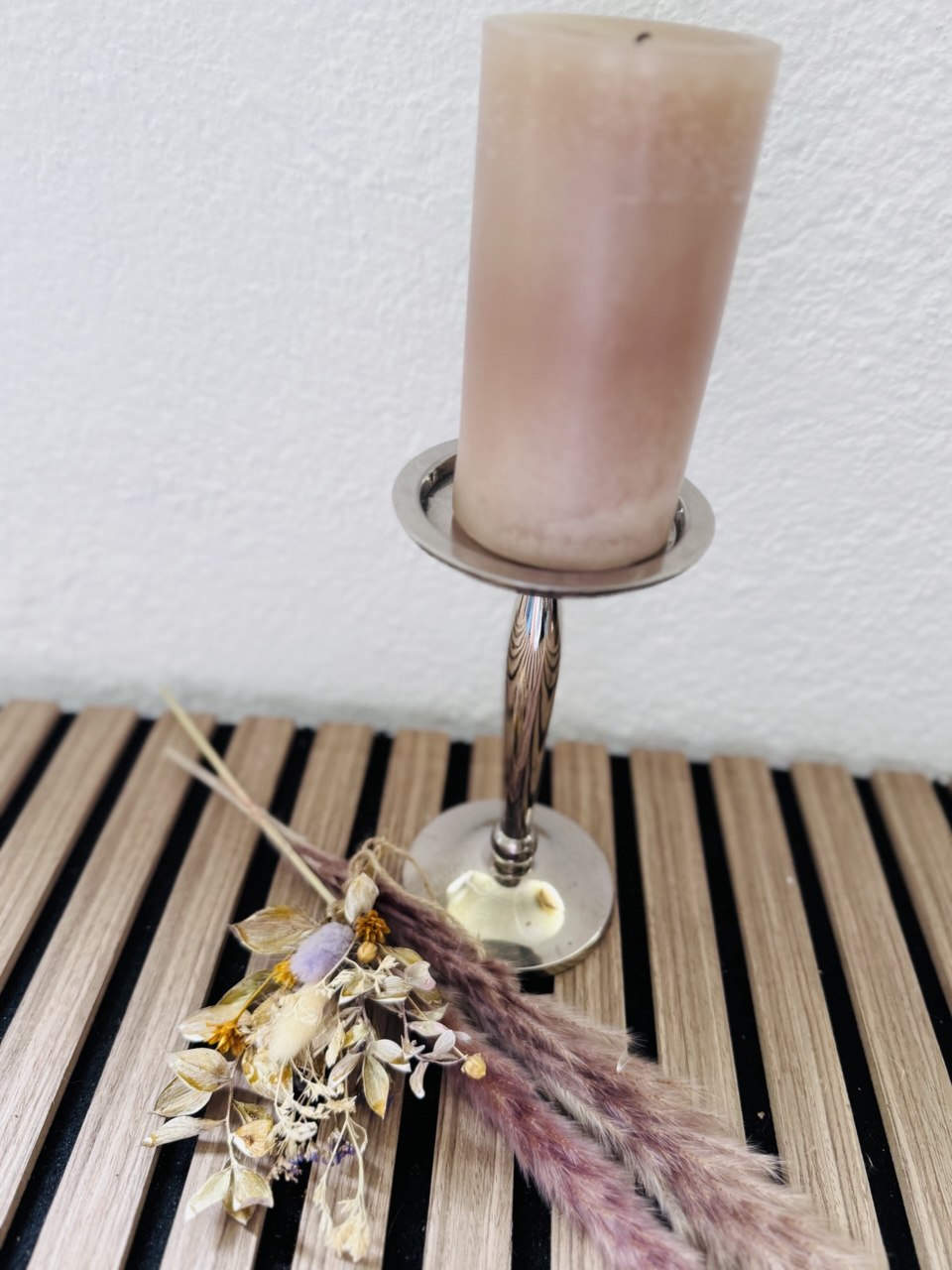 Der Kerzenständer Carla ist speziell für Stumpenkerzen konzipiert und verleiht sowohl festlichen Anlässen als auch Ihrem Zuhause eine besondere Atmosphäre.