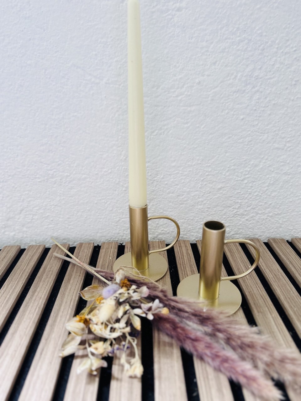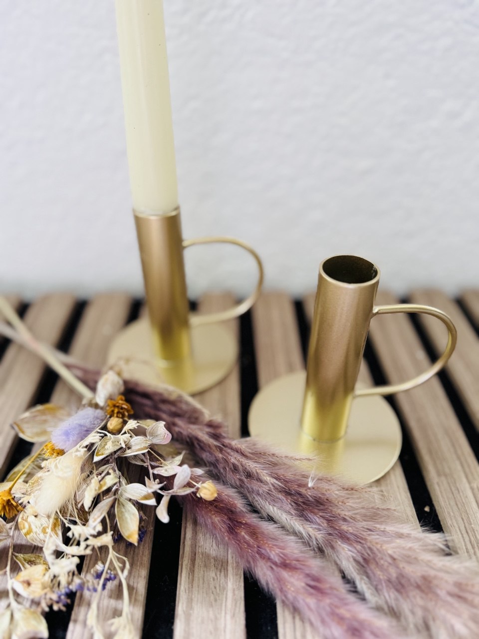 Der elegante Kerzenständer Hanna in strahlendem Gold bringt einen zauberhaften Glanz in euer Zuhause und schafft eine warme, einladende Atmosphäre.