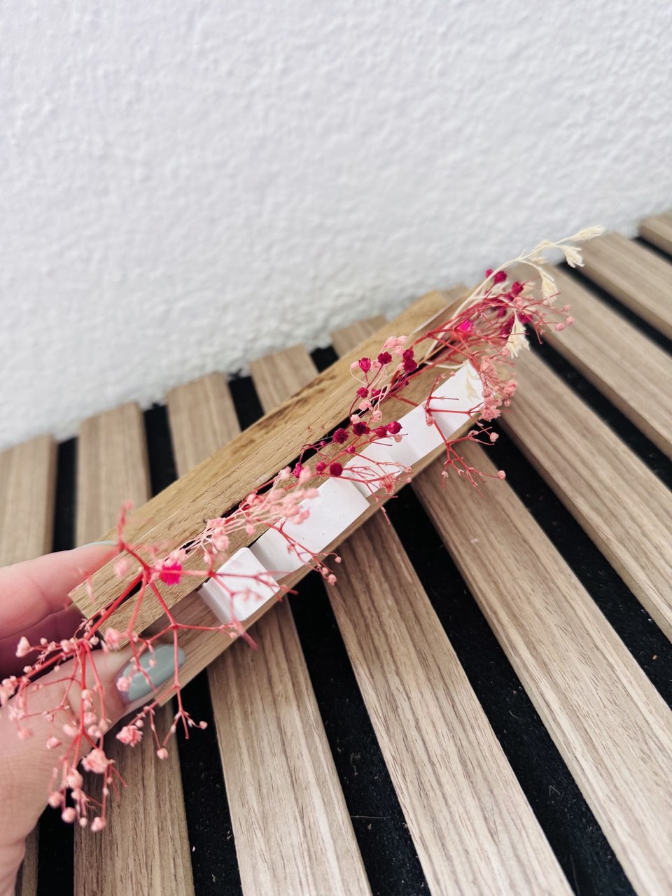 Material: Holz, Trockenblumen, Gießpulver aus Gipsbasis