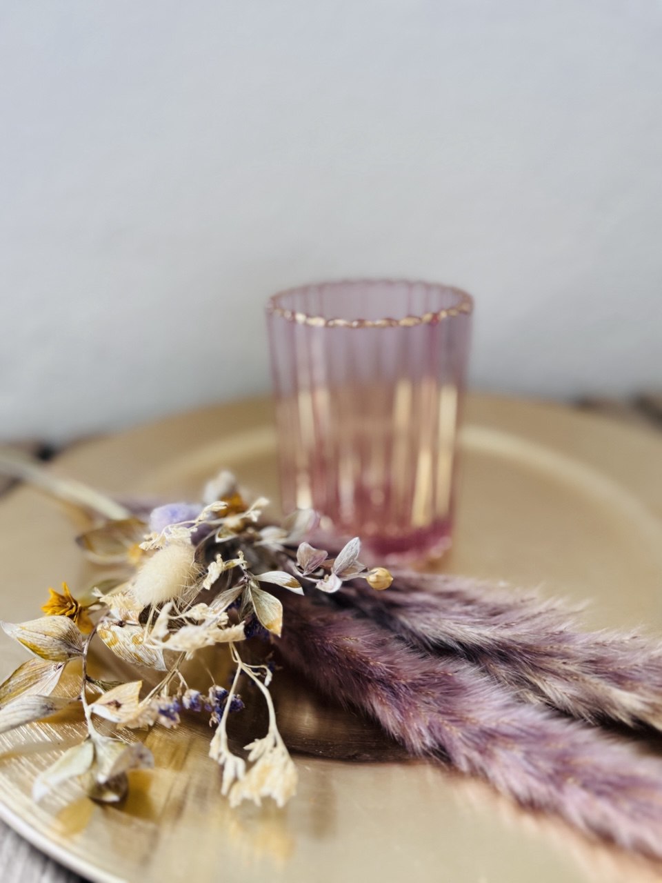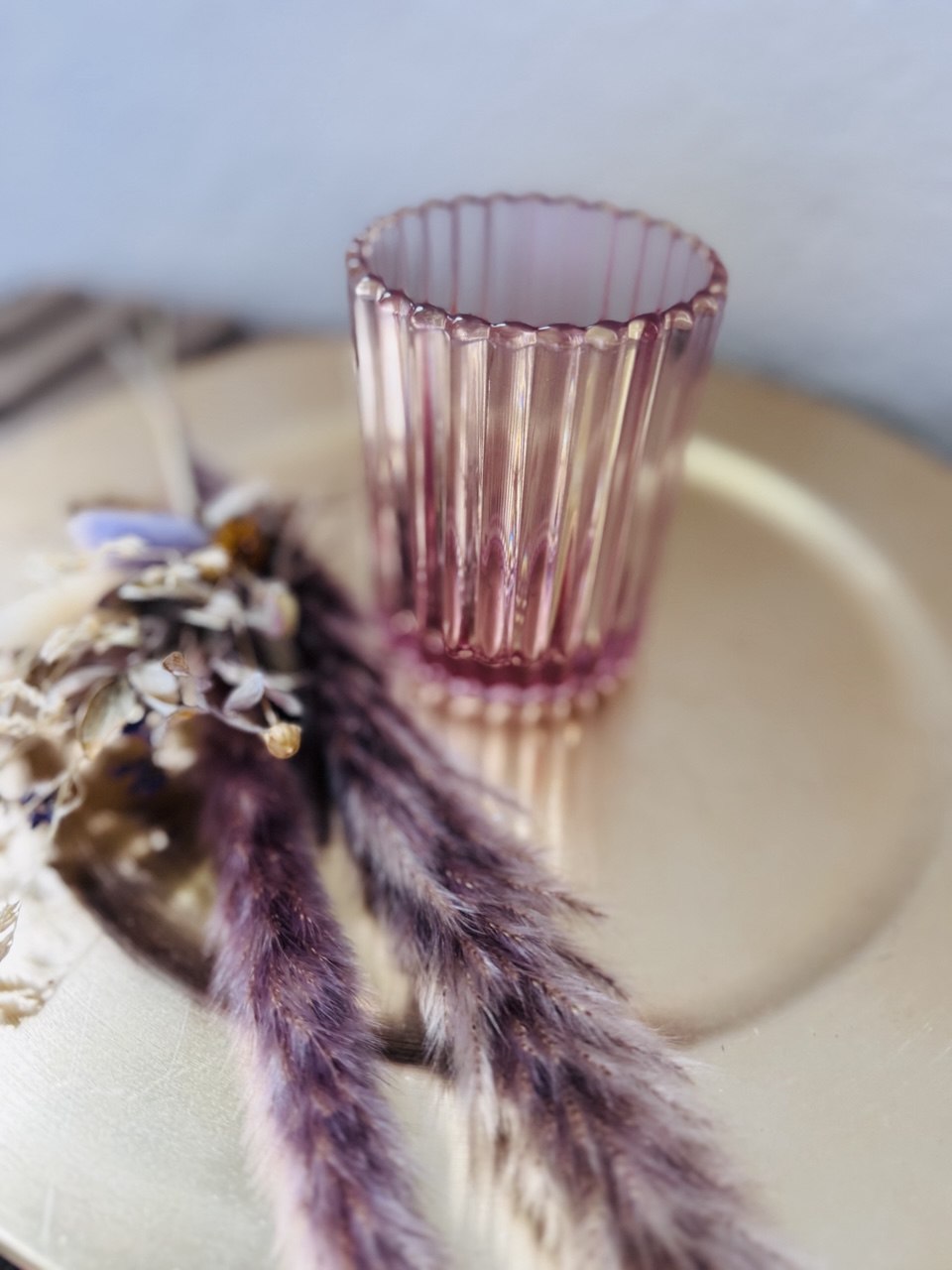 Der kleine Teelichthalter im helleren Rosa überzeugt mit seiner attraktiven Riffelstruktur und wird garantiert zum Blickfang in jedem Raum.