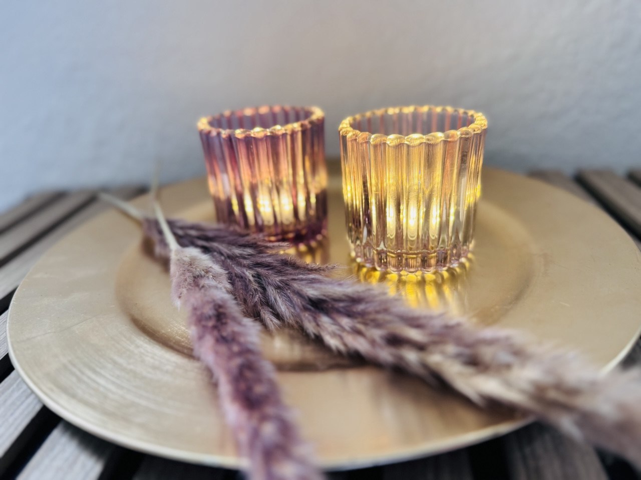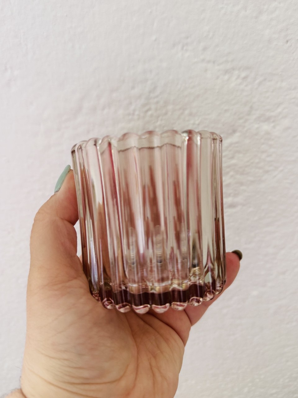 Der kleine Teelichthalter im helleren Rosa überzeugt mit seiner attraktiven Riffelstruktur und wird garantiert zum Blickfang in jedem Raum.
