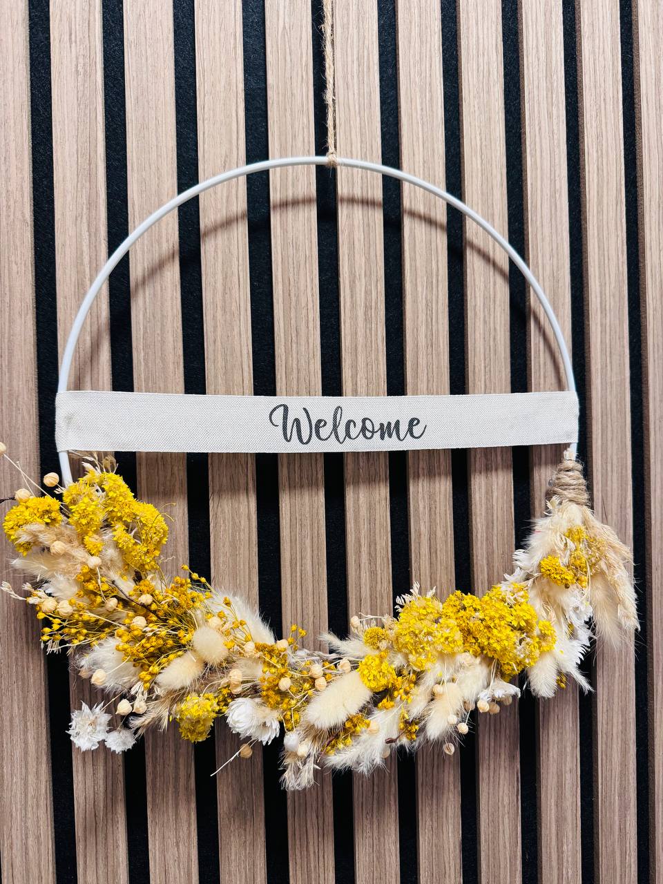 Willkommenskranz mit gelb/weißen Trockenblumen