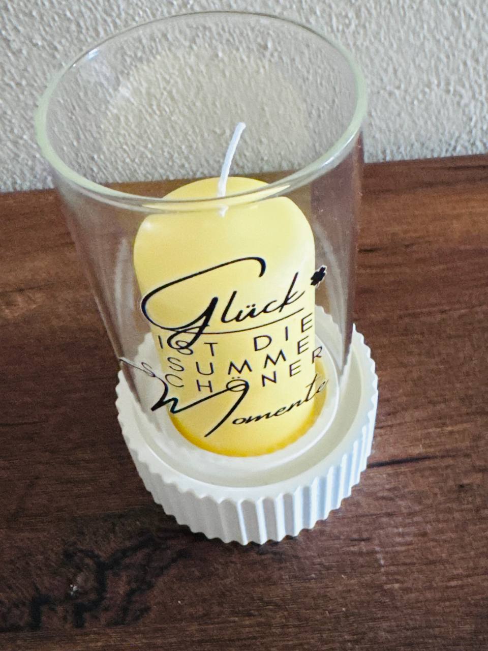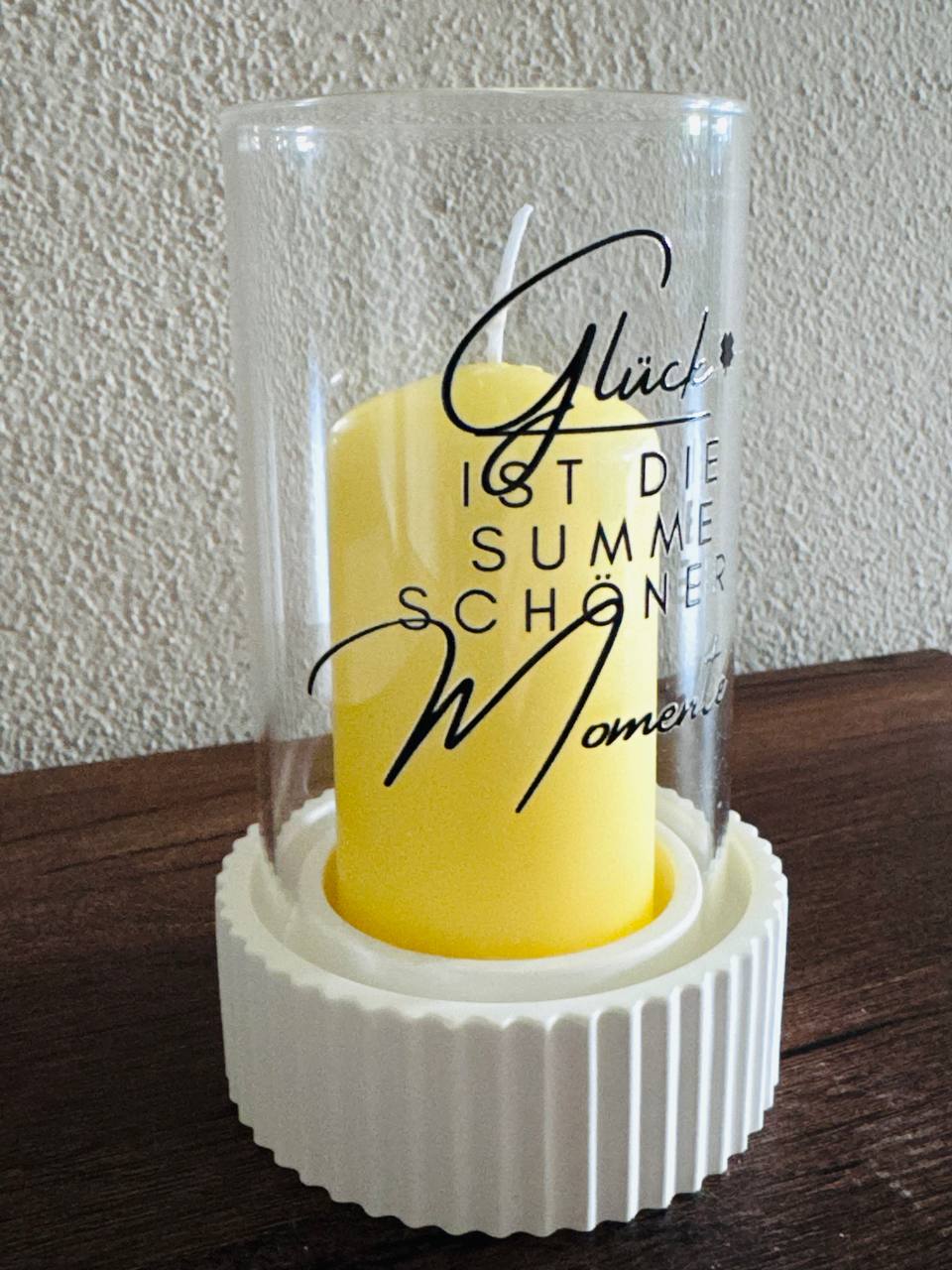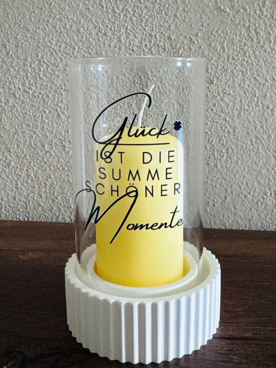 Dieses hübsche Windlicht in sonnigem Gelb mit liebevollem Spruch bringt eine warme Atmosphäre ins Wohnzimmer und eignet sich perfekt als Geschenk oder für sich selbst.